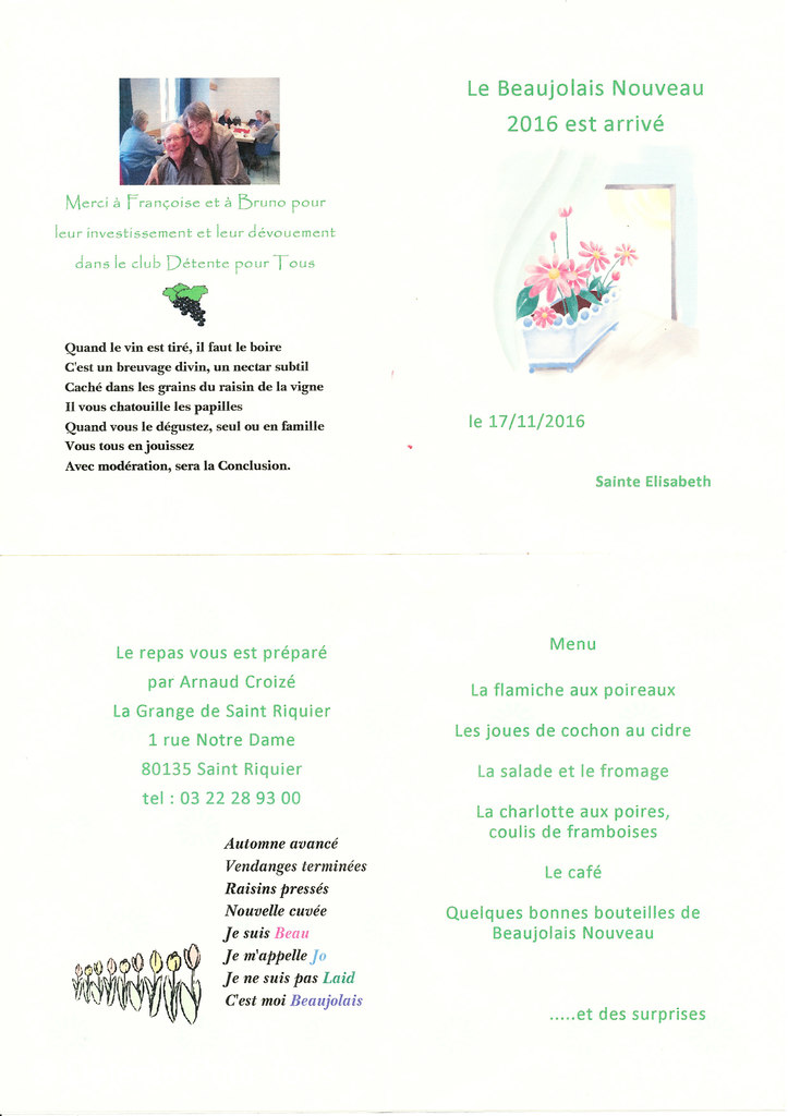 Quelques photos de notre journée du Beaujolais 2016 et le menu.