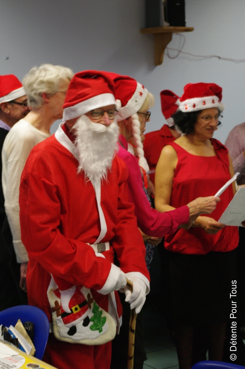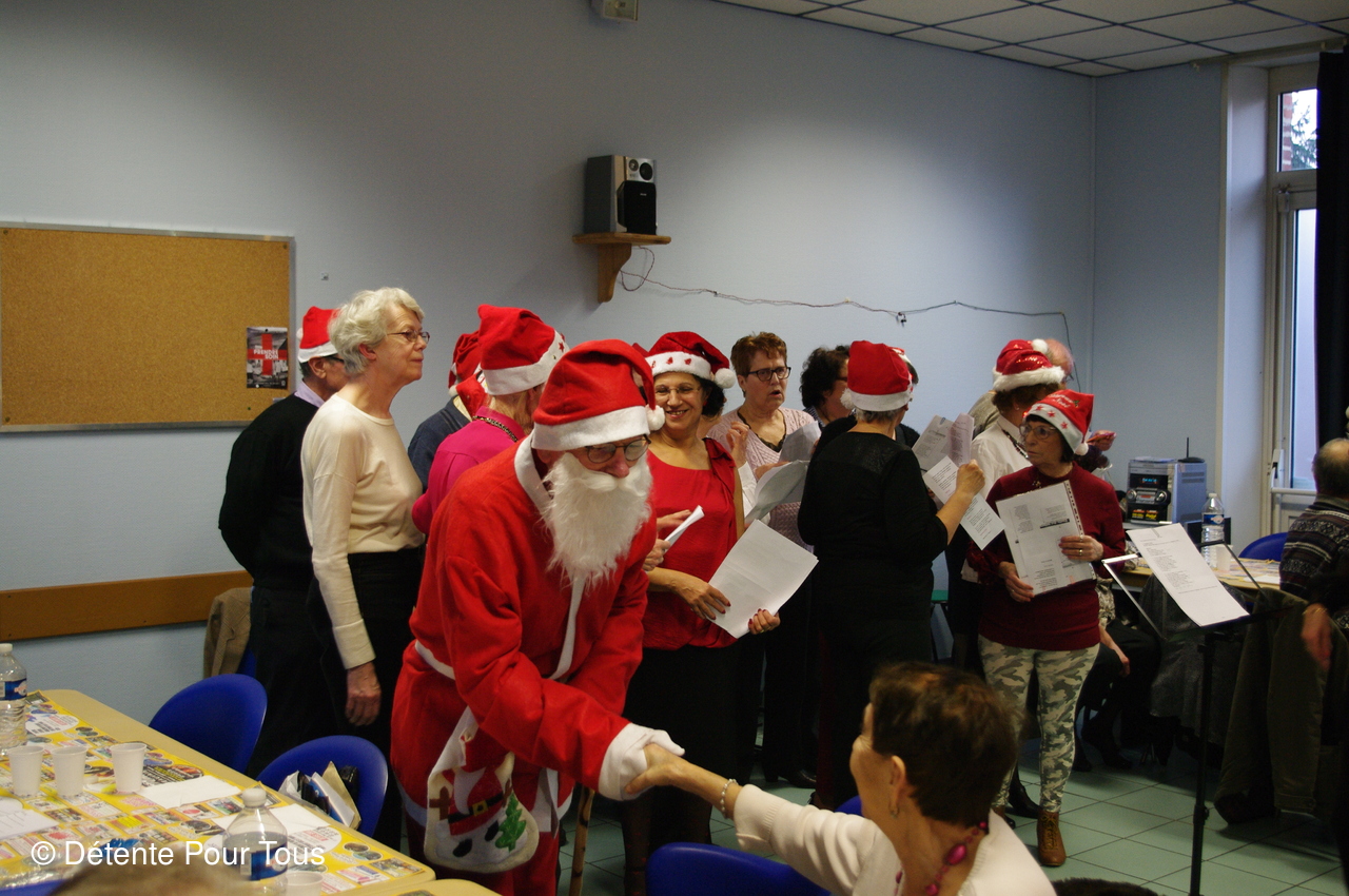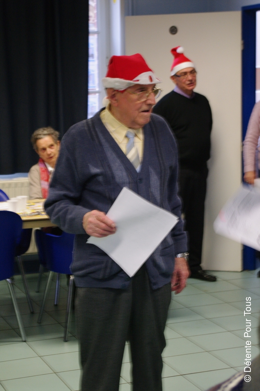 Notre trésorier, dit "PICSOUS", avec quelques membres du club nous ont diverti avec des sketchs et des chants. En fin d'après-midi, le Père Noël a distribué les colis de Noël à tous les adhérents.
