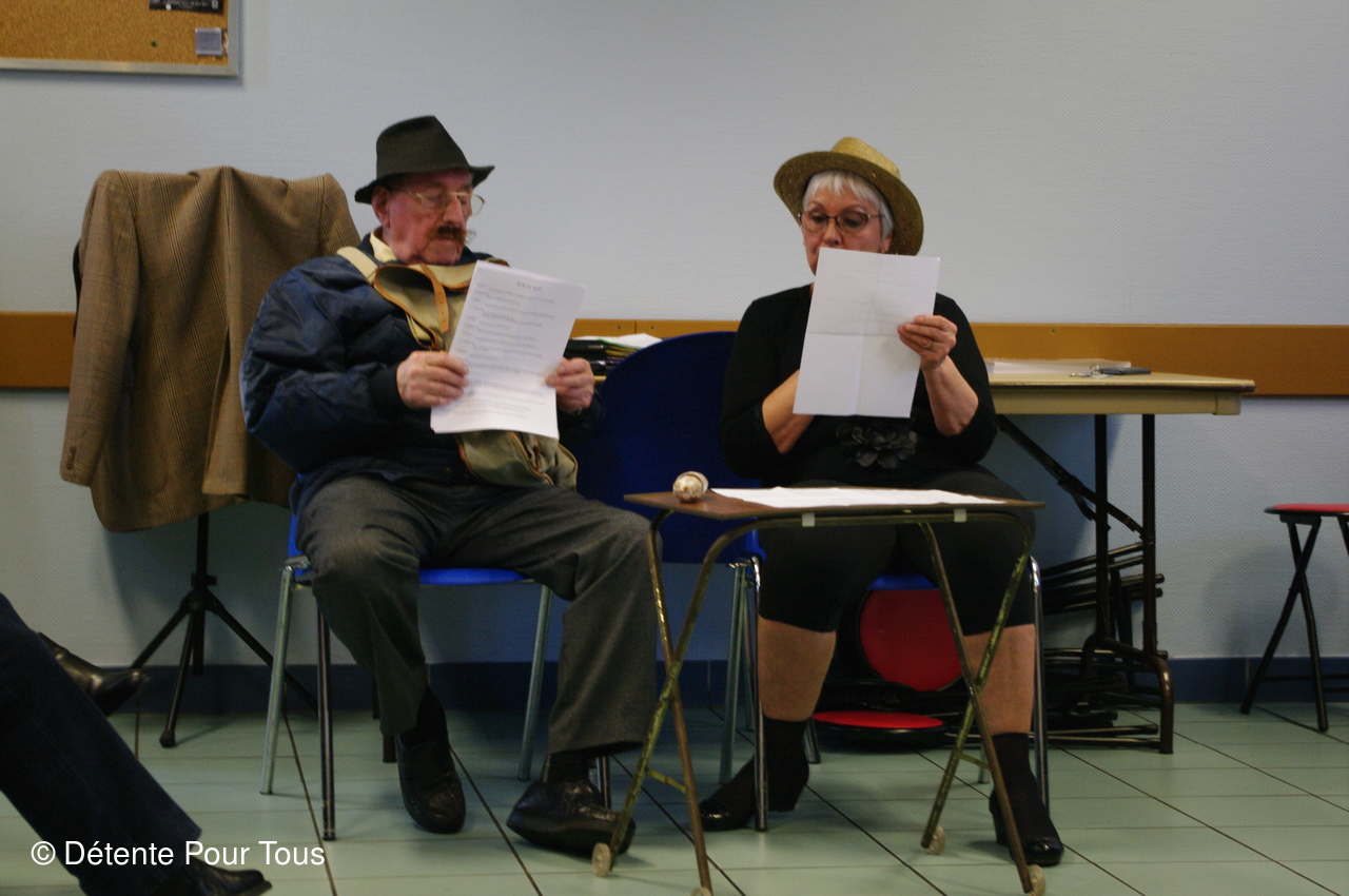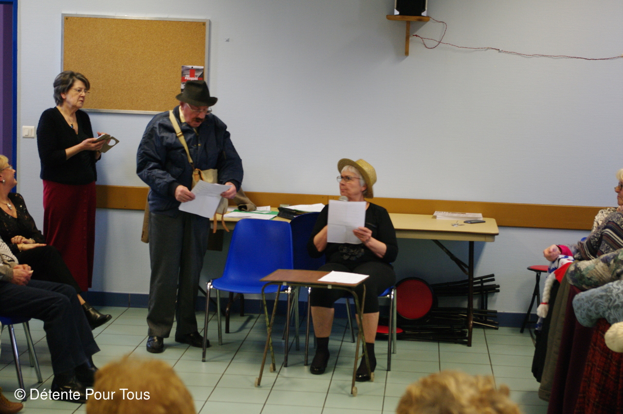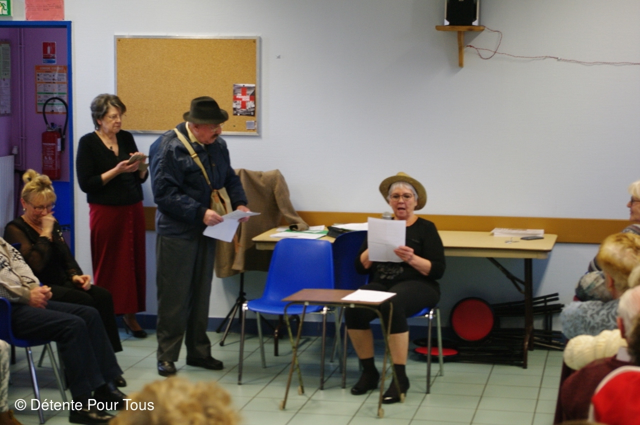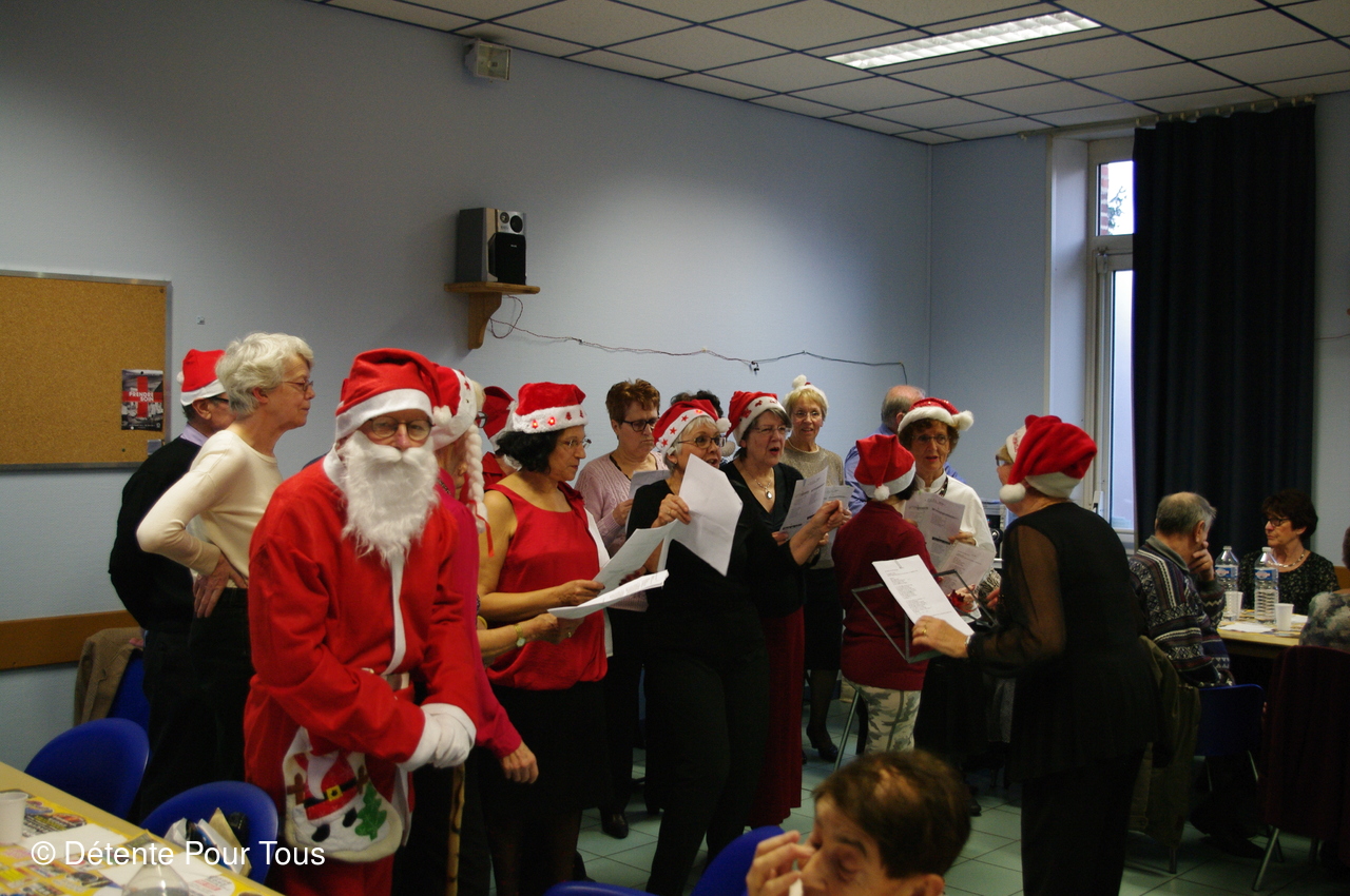 Notre trésorier, dit "PICSOUS", avec quelques membres du club nous ont diverti avec des sketchs et des chants. En fin d'après-midi, le Père Noël a distribué les colis de Noël à tous les adhérents.